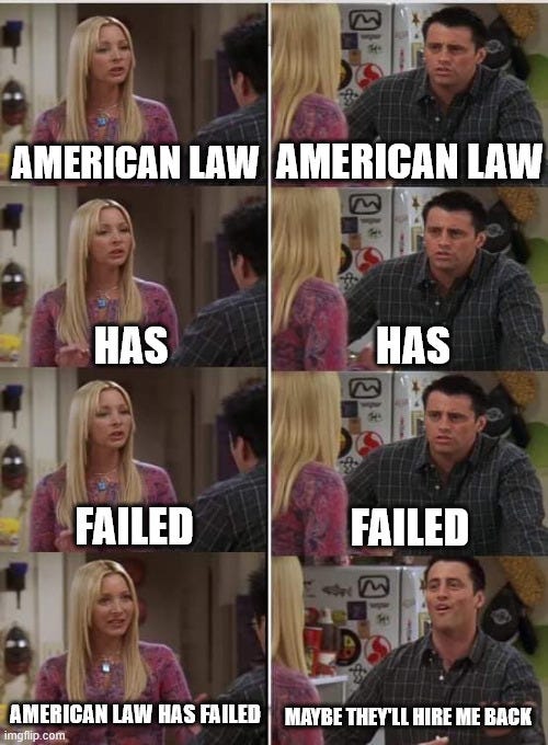 Look, I know it’s been a slow and halting start this year. I had to move last summer. Then I went dark to organize several years of thoughts into a book proposal so I could apply for grant funding from the National Endowment for the Humanities—remember when we thought that stuff would still exist? Money’s got to come from somewhere though. So I spent the last five months applying for jobs, hoping to jump back on the horse of regional tier legal academia with a hot new research agenda and aggressive publishing plan. Okay, okay. It was always a fool’s errand. That’s on me.