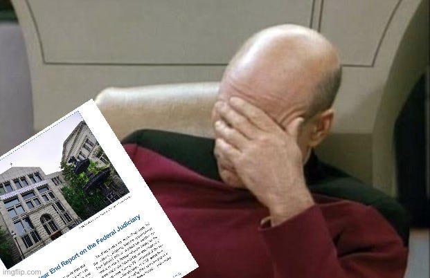 For the few who muddled through the introductory blather, Chief Justice John G. Roberts, Jr.’s 2024 Year End Report on the Federal Judiciary imparts a prescient message, becoming of the esteem and discernment of his high office: You guys are being too mean to me. Bemoaning four categories of rampant “[un]informed criticism” of the Court, which seems to include anything he doesn’t like, given that he can’t point to any examples of “informed criticism” or lessons learned over the years, the Chief’s apparent failing grasp on reality betrays, in fact, a dangerous misapprehension of his Constitutional role and that of the Federal judiciary generally.