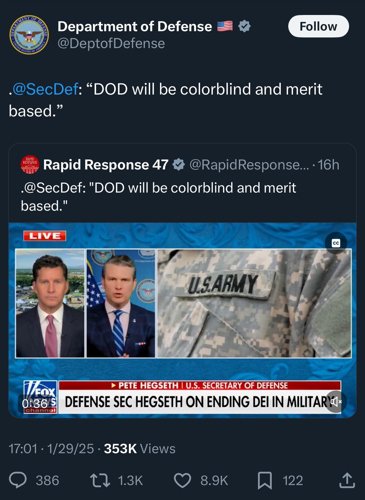 Take a step back. Constitutional interpretation too often devolves into a meaningless academic venture. What is actually going on here? Of course, we know that for Pete, “colorblind” and “merit based” just means circling the wagons around mediocre white men (God, I hope I’m not one of them) getting jobs (phew, safe) and holding power at the expense of qualified women and people of color. But Harlan said it, and more polished rightwingers have been using the phrase for a while. So it’s worth probing. What do reactionaries even mean when they proclaim, “our Constitution is colorblind.”