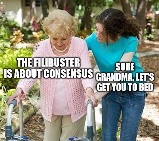 Except that, to Kendall and Carey, The Federalist is precisely why Congress ought to back down. The Constitutional morality of consensus building between coordinate branches counsels the avoidance of “showdowns.” Congress should wait for wayward justices to eventually die. Congress should, presumably, respect the veto power. In fact, Congress should respect every bit of delay, minoritarian check, and procedural mire. That is, Kendall and Carey have resurrected Congress not in glory, but still crucified! Incapable by design! Our Constitutional morality calls not for majority rule, but for rule “by the deliberate sense of the community.” That majority, to be sure, “has its role in the system; but that role, as we begin to understand, is that of midwifing.” Consensus demands, more or less, “unanimity, obeying the basic rule: The majority must carry the minority along with it, because all men are created equal, as they were in the saloon of the Mayflower, in their capacity to give or withhold consent” (148–49). Oh, now they care about equality.